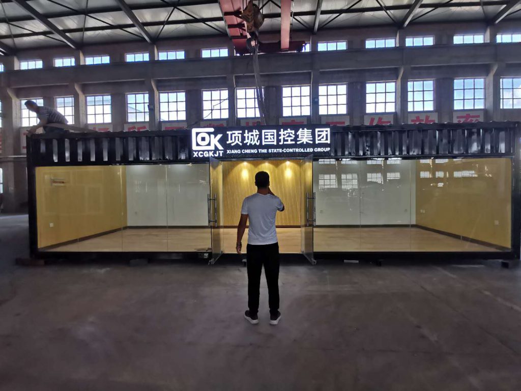 河南項(xiàng)城國控集團(tuán)銷售中心,定制尺寸為3620*10200*2700mm,總面積37m2,近乎相當(dāng)于1.5個(gè)40GP貨柜箱。外墻為1.2mm厚金屬波紋板,彰顯集裝箱霸氣外形。內(nèi)墻為吸音板+硅酸鈣板,前墻落地玻璃窗,窗明幾凈。本產(chǎn)品采用工廠化加工,整體運(yùn)輸,不僅省去了現(xiàn)場施工環(huán)節(jié),而且方便運(yùn)輸,可循環(huán)使用,大大節(jié)約了造價(jià)成本。