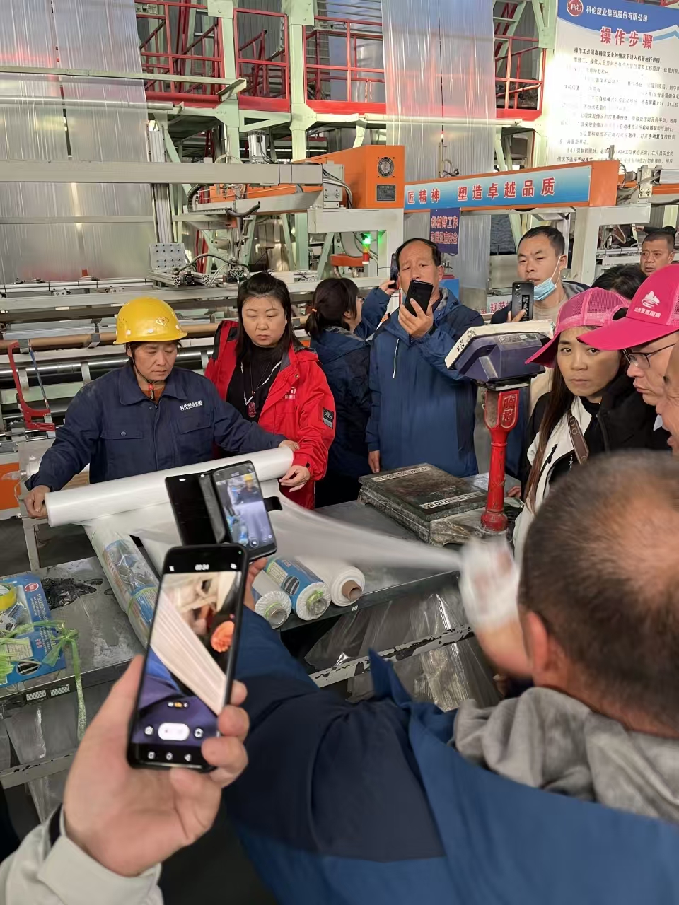 在集團(tuán)領(lǐng)導(dǎo)和公司銷售、技術(shù)人員的帶領(lǐng)下,考察團(tuán)參觀了功能棚膜車間、地膜車間、技術(shù)研發(fā)中心、展廳等處??苽愃軜I(yè)先進(jìn)的集中棚膜供料設(shè)備、智能化地膜自動(dòng)卷取系統(tǒng)、一流的檢驗(yàn)檢測(cè)儀器受到廣大客商的高度關(guān)注和充分肯定。
